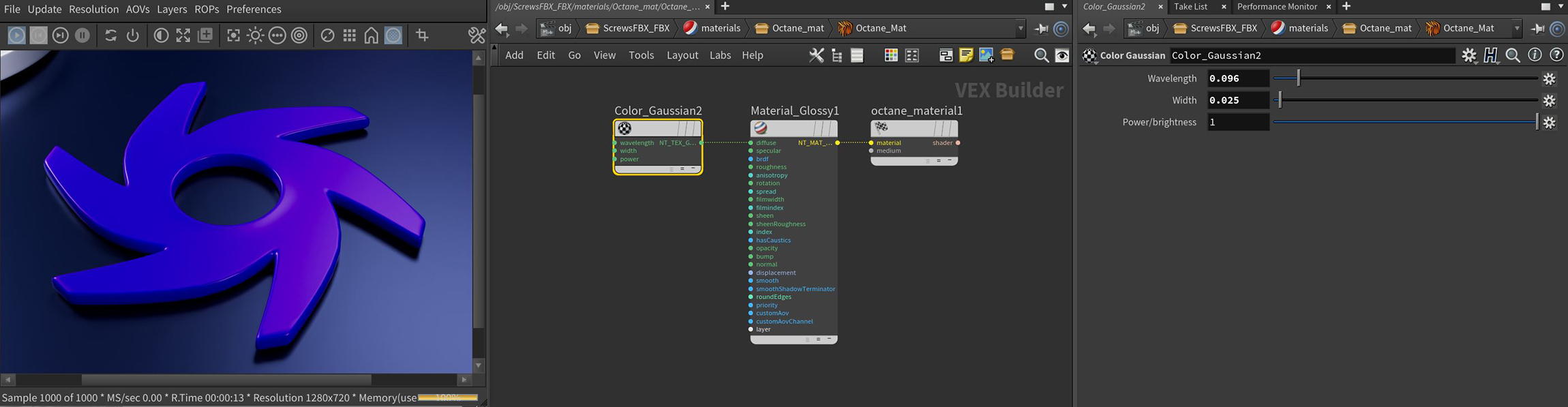 The Gaussian texture is based on a Gaussian distribution spectrum. Wavelength sets the center of the spectrum, and Width sets the width of the curve (Figure 1). The narrower the width, the more pure and saturated the color.