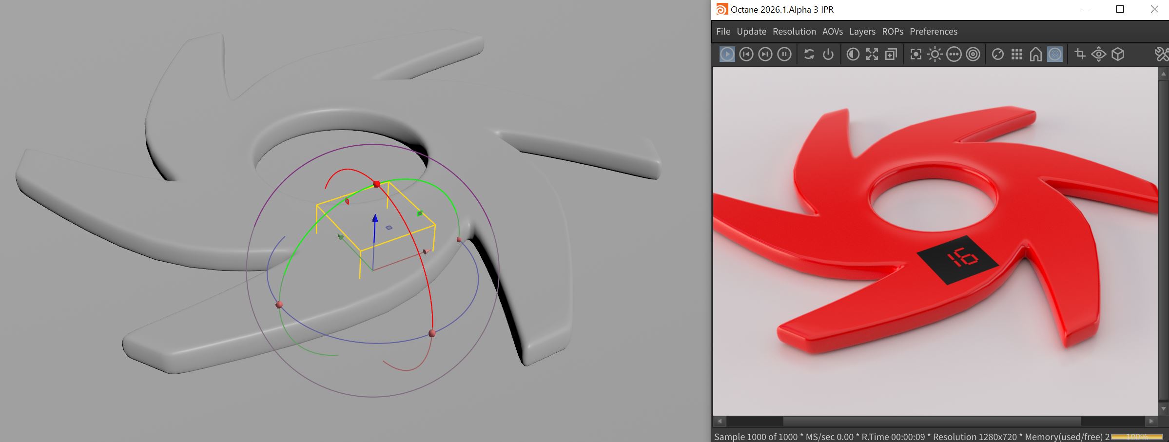 Figure 1: The Digit texture is displayed as a decal on the Octane logo