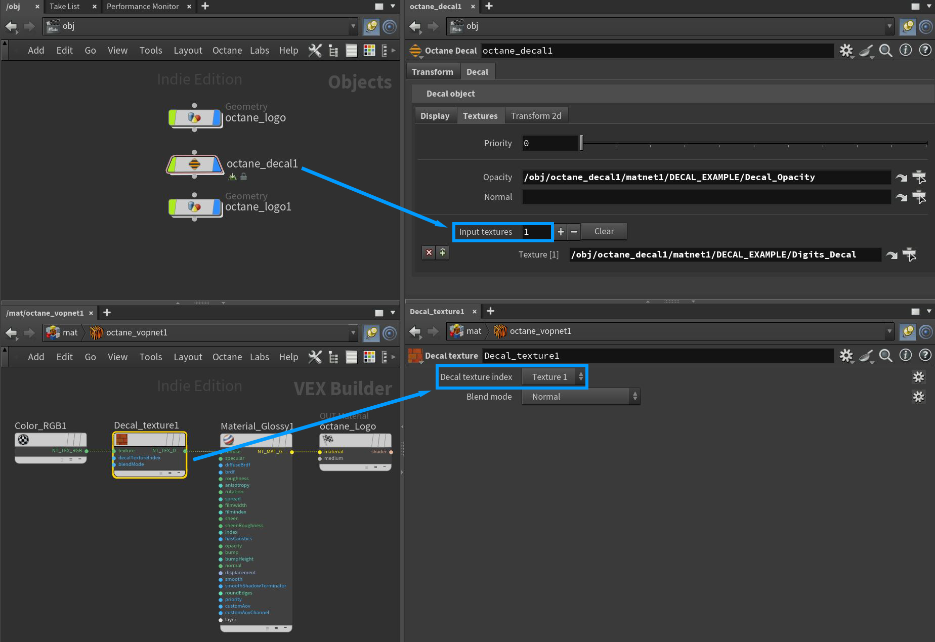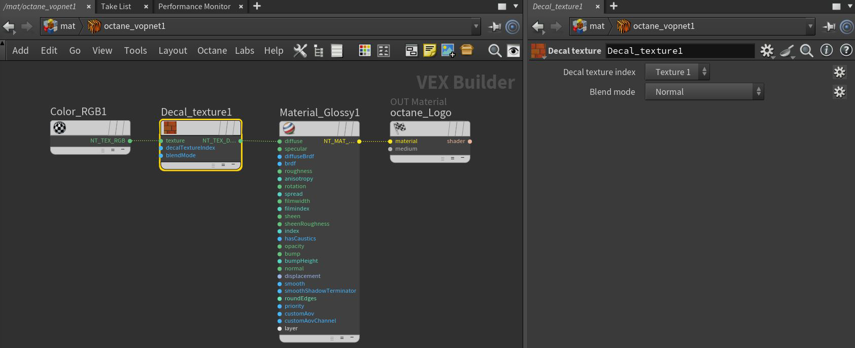 Figure 2: The Decal Texture node attached to a material in a VOPNET