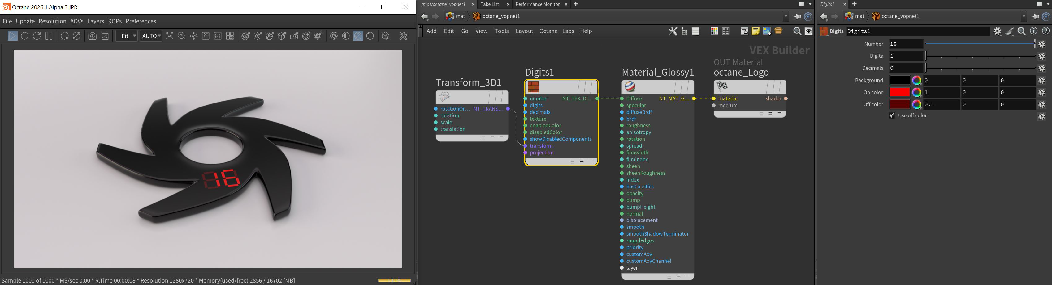 The Digits procedural texture produces digital numbers specified in the Number parameter for the texture node (figure 1).