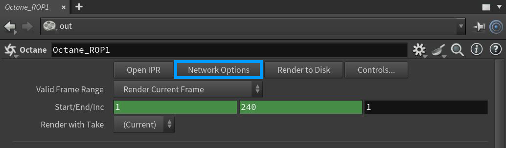 To enable network rendering for a Primary Render Node, click on the Octane ROP node, then click on the Network Options button (Figure 1).