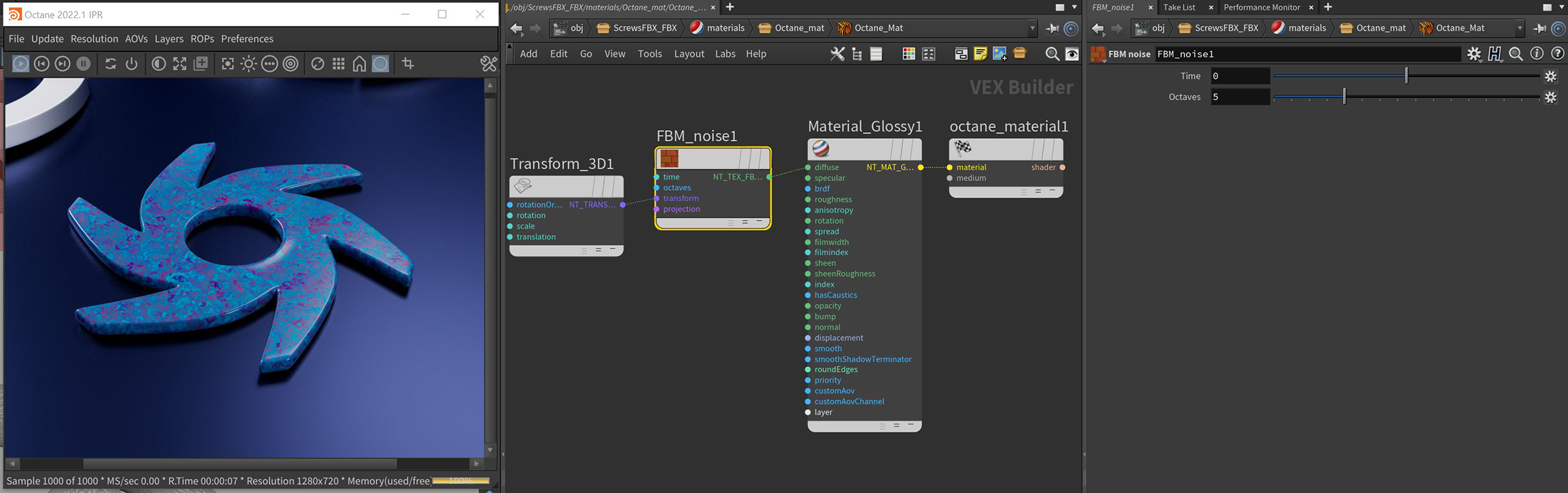 The FBM Noise procedural texture produces a 3D noise pattern similar to the FBM FLow Noise but with fewer parameters (figure 1).
