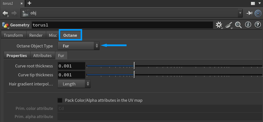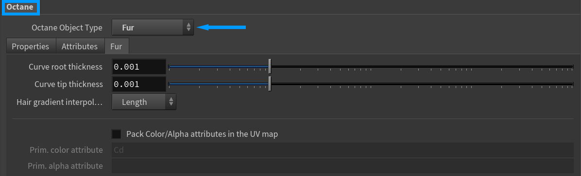 Figure 2: Accessing the Fur options from the Octane Object Parameters tab