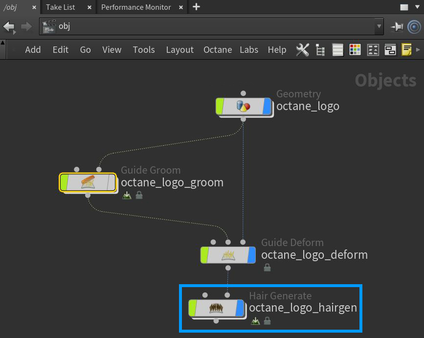 Figure 5: Selecting the Hair Generate (hairgen) node
