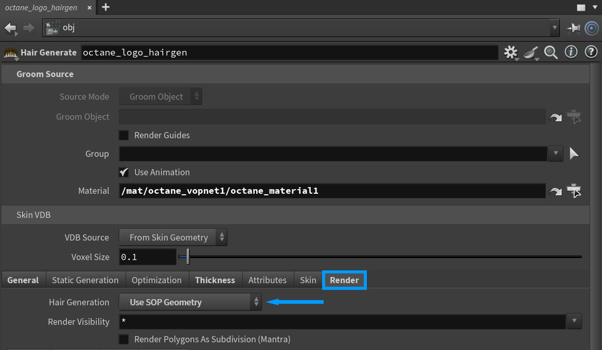 Figure 6: Setting the Hair Generation type to Use SOP Geometry