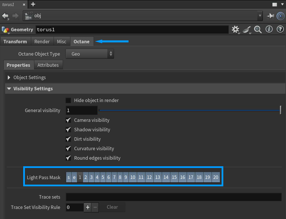 Scene object can also specify which Light Pass ID they are associated with in their Octane Object Parameters tab. In figure 4, a scene object is being excluded from lights with a Light Pass ID of 1.