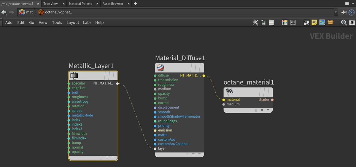 Figure 1: A Metallic Layer mode connected to the Layer pin on a Diffuse Material node