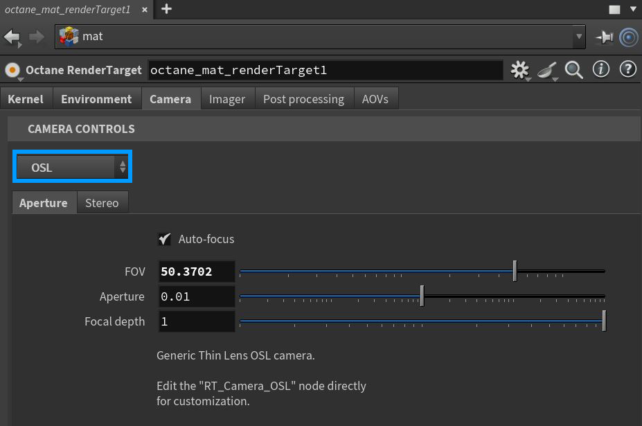 The inherent attributes of an OSL Camera node includes its position, target, up-vector (orientation) and stereo-related parameters. This means the moment you invoke an OSL Camera node, it supports camera motion blur and stereo rendering.