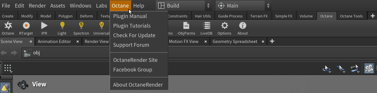 - Check For Update - A link to the OctaneRender for Houdini release subforum, where all the plugin builds are available.