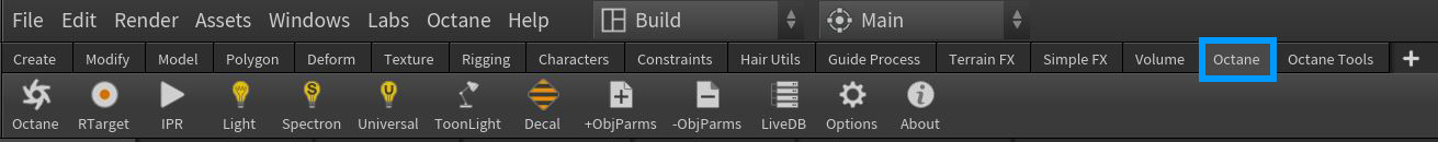 The OctaneRender® plugin provides a top menu in Houdini® with useful links and information about OctaneRender (Figure 1).