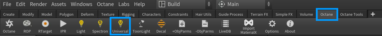 Figure 2: Accessing the Octane Universal Light from the Octane shelf