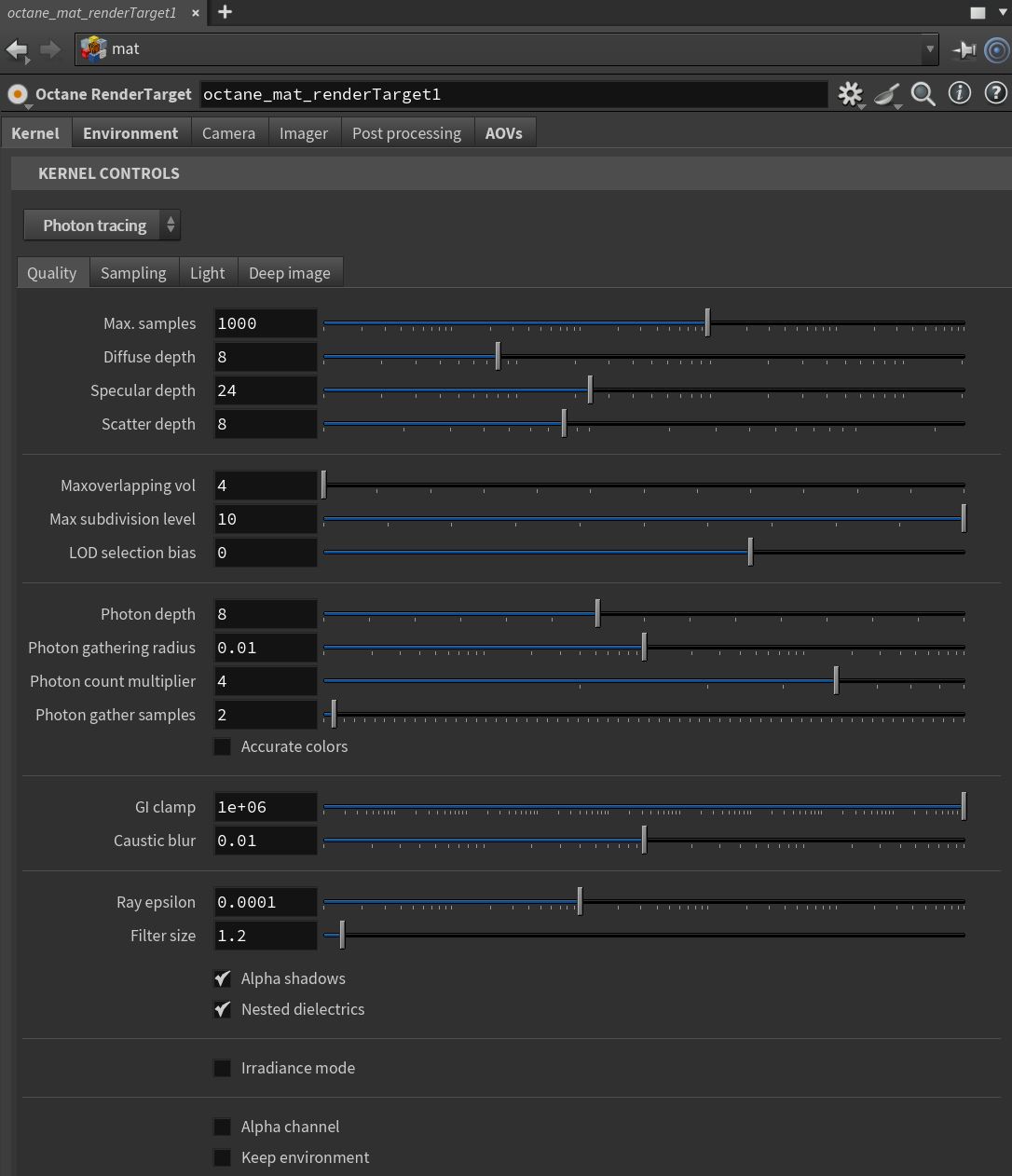 Irradiance Mode - This renders the first surface as a white Diffuse material. Irradiance Mode works similar to Clay Mode, but it applies to the first bounce. It disables the Bump channel and makes samples that are blocked by back faces transparent.