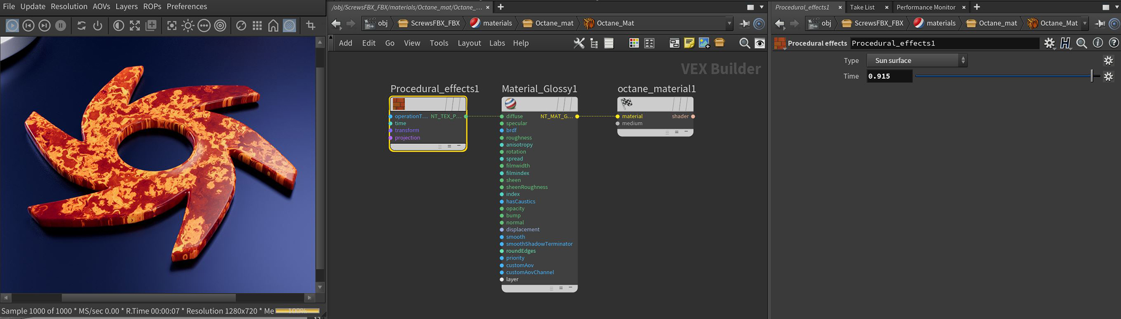Figure 1: The Procedural Effects texture applied to a Diffuse material on the Octane logo
