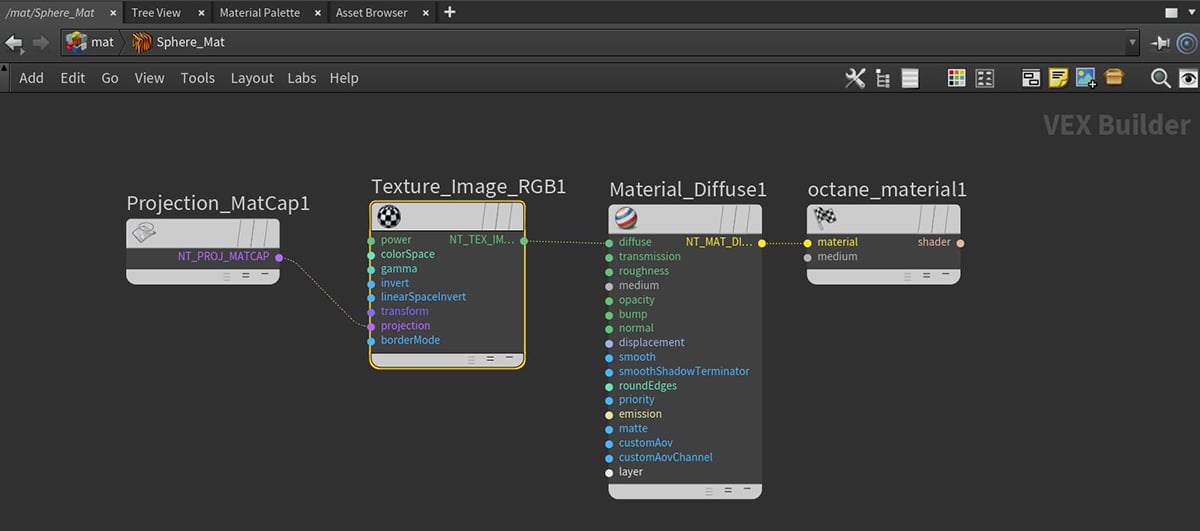 Figure 1: A Matcap projection node used to correctly project a matcap texture connected to the Diffuse pin on a Diffuse material node.