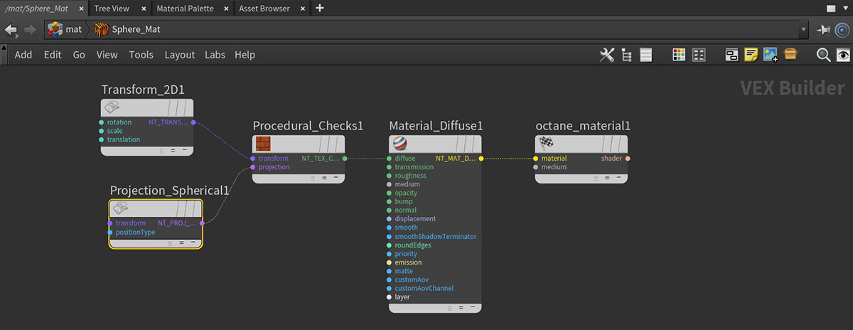 The Spherical projection is used for Environment textures and IES Light distributions. It performs latitude-longitude mapping for the UV coordinates, and for procedural textures, the W coordinate is the distance from the origin.