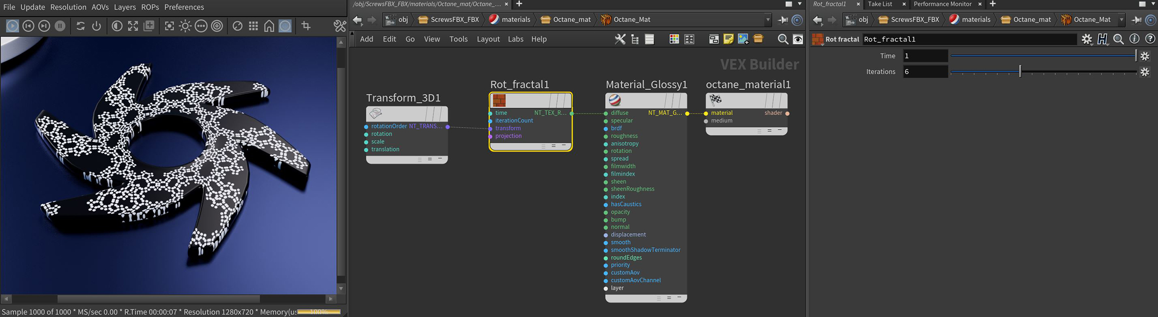 Figure 1: The Rot Fractal texture applied to a Glossy material on the Octane logo