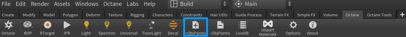 The Scatter on Surface node should be added to an Octane VOP NET in the MAT network. A Geometry node should be added to the OBJ network and the geometry in this node will be used as the scattering surface. The Octane +ObjParams should be added to the geometry node containing the scattering surface (figure 2).