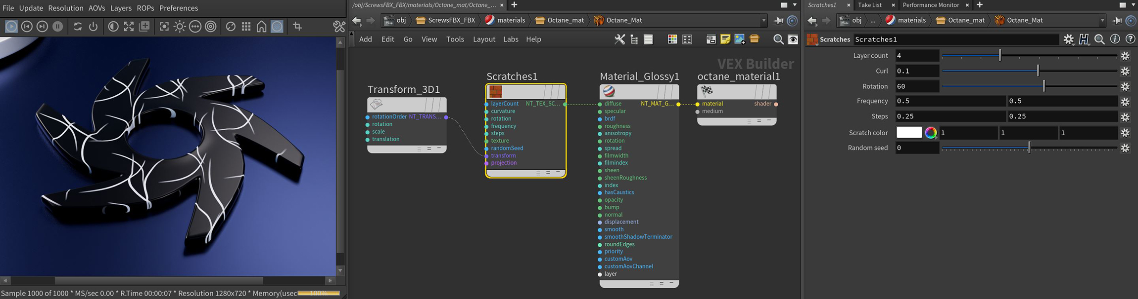 The Scratches texture map produces a pattern that can be used for adding wear and tear to the surface of an object (figure 1).