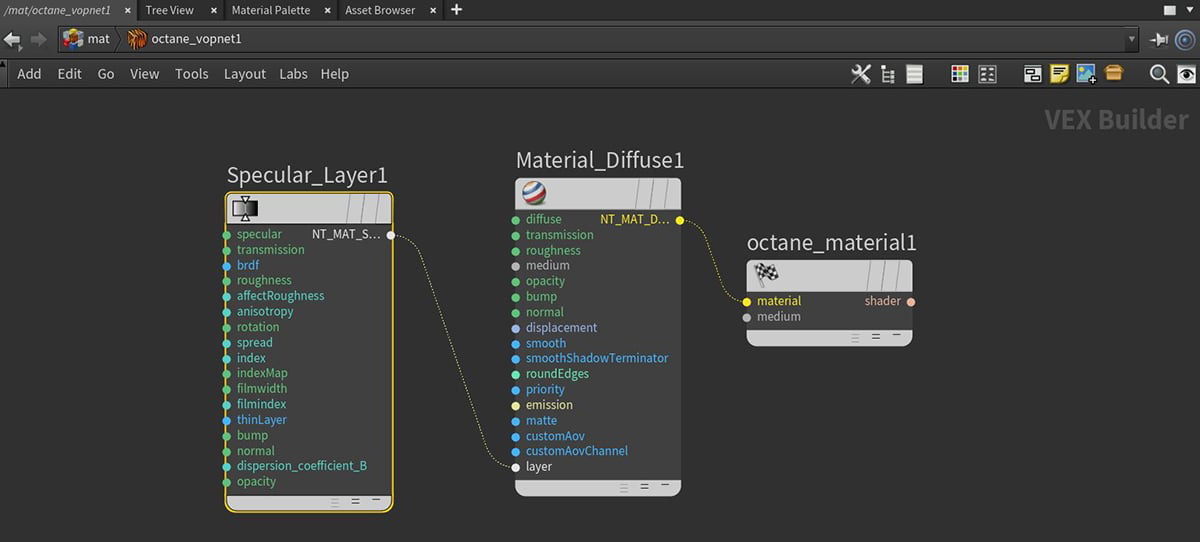 Figure 1: A Specular Layer mode connected to the Layer pin on a Diffuse Material node