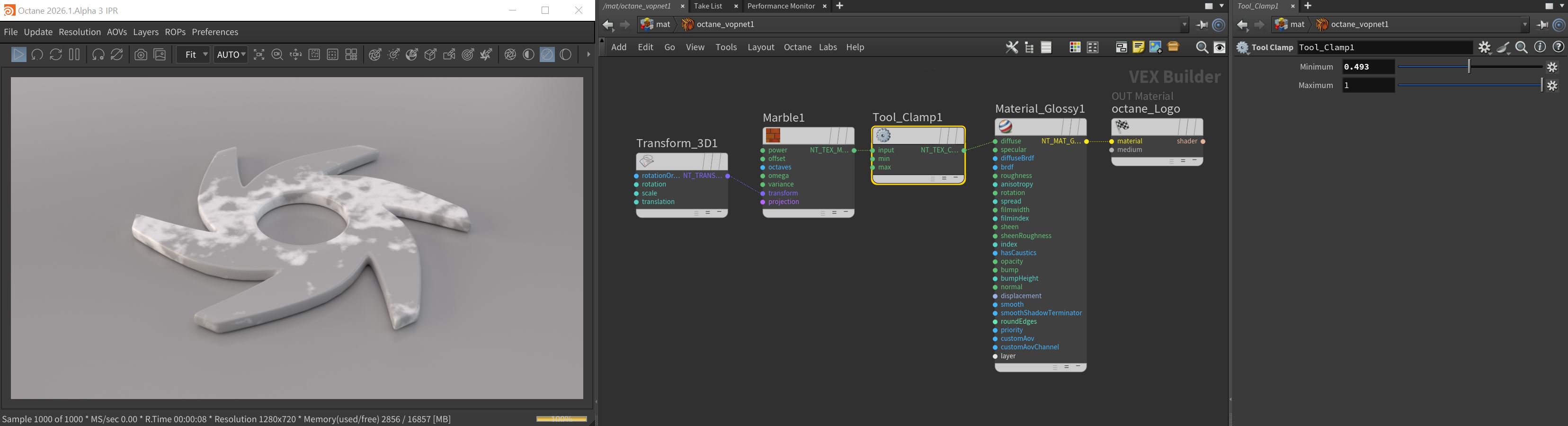 Figure 1: A Clamp is softening the contrast in a Marble texture