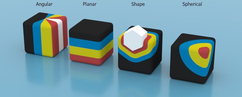 - Spherical - Maps the distance of the origin in UVW space to a (clamped) gradient value