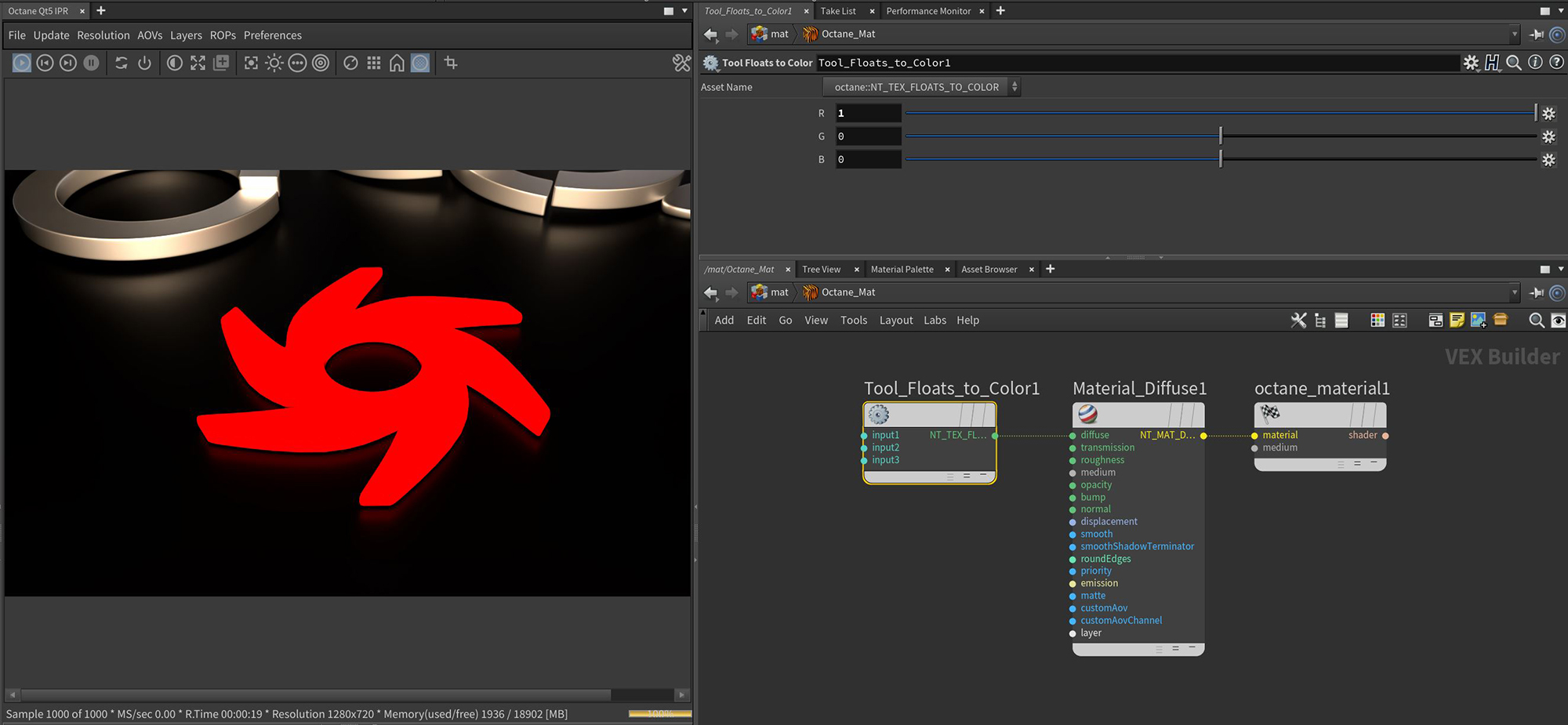 Figure 1: The Floats to Color node's Red value set to 1.0
