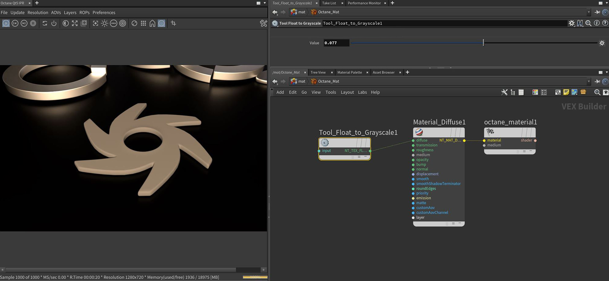 Textures OverviewTools Tool Float to Grayscale The Float to Greyscale texture node generates a greyscale output depending on the value (figure 1). Tool Float to Grayscale Figure 1: The Float to Greyscale value set to 0.077 which generates a dark grey output