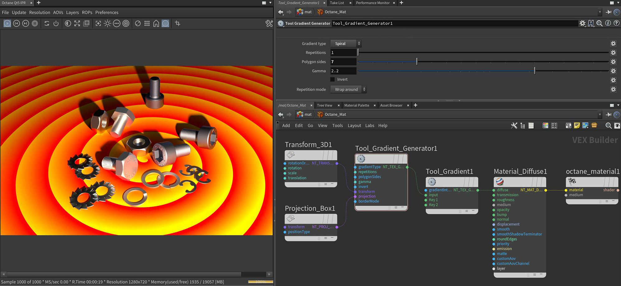 Figure 1: The Gradient Generator node connected to a Gradient Map node's Input Texture pin to produce a colored radial gradient
