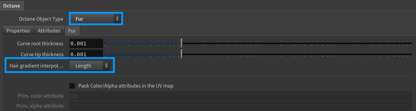 Figure 1: The Fur tab in an Octane Obj Parms tab
