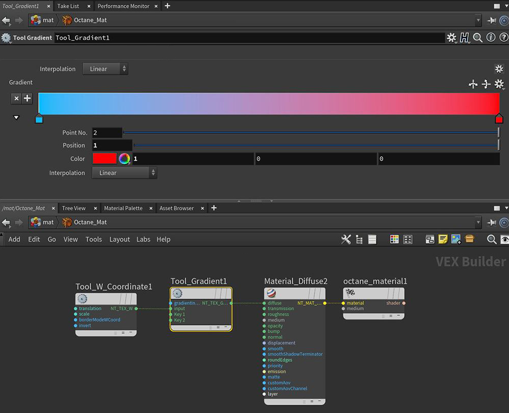 Figure 3: The Gradient node parameters and the node network associated with the rendering from Figure 2