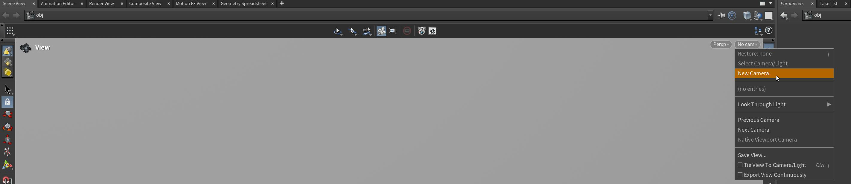 To render the scene, you need to create a camera from the Camera menu in the Viewport (Figure 4), and set this Camera node in the Render Camera parameter of the Octane ROP tab (Figure 5).