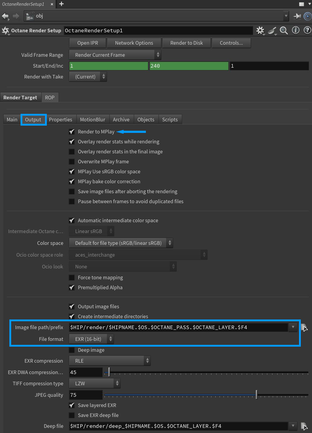 Figure 11: Rendering to the MPlay window from the ROP node parameters